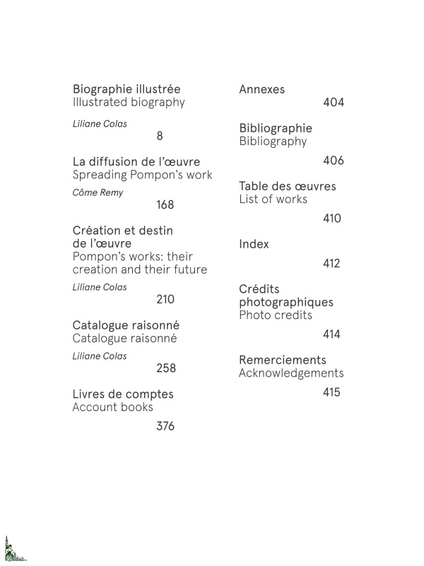 Pensé comme un outil de référence, il réunit une biographie richement illustrée, des textes d'analyse, le catalogue raisonné de l'artiste, ainsi que ses livres de comptes autant de ressources précieuses pour comprendre, documenter et étudier en profondeur l'uvre de Pompon.