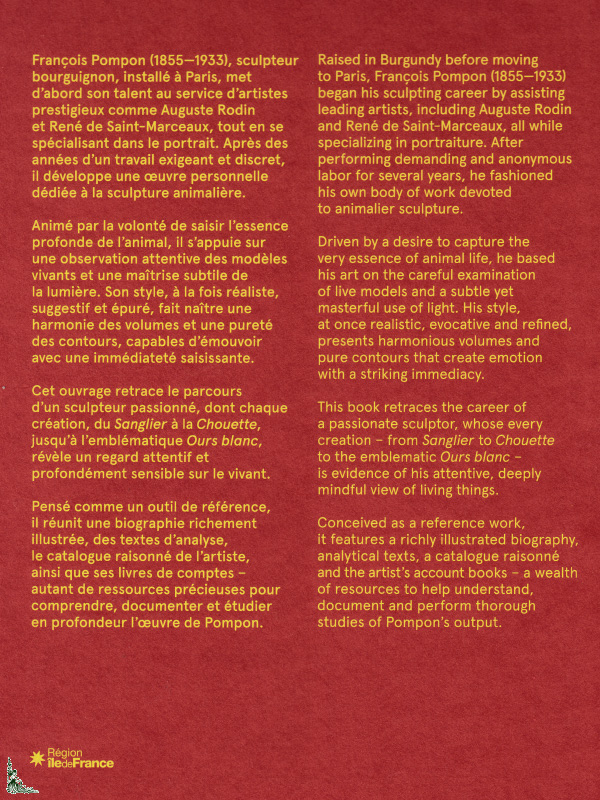Concieved as a reference work, it features a richly illustrated biography, analytical texts, a catalogue raisonné and the artist's account book - a wealth of ressources to help understand, document and perform through studies of Pompon's output.
